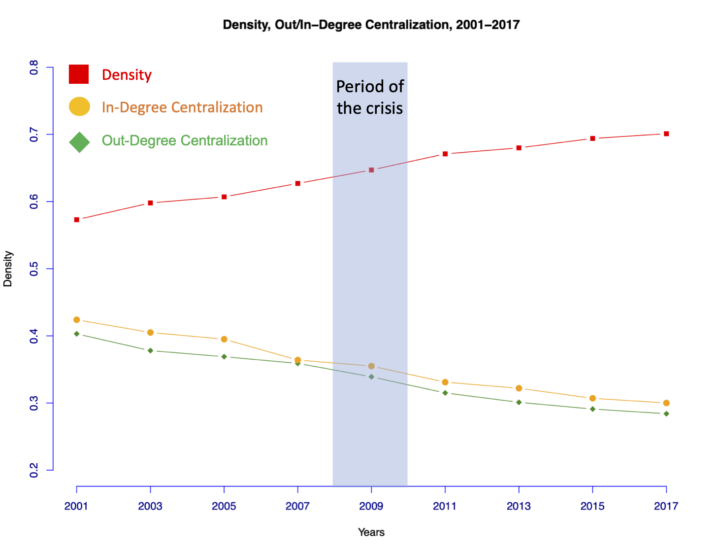 My research adopts a social network perspective to investigate the relationship between global trade, economic crises, and economic productivity across both macro and meso levels of the world economy. Specifically, I aim to answer the following questions: